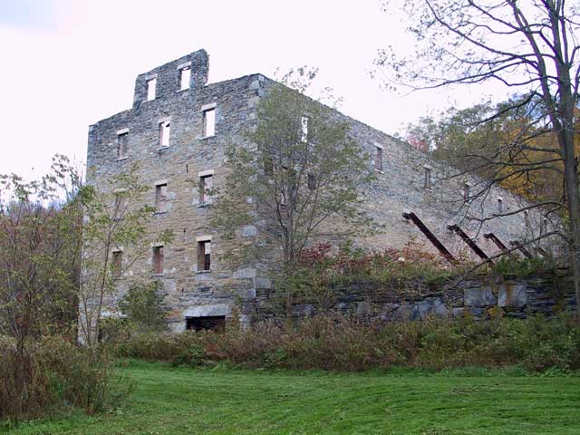 Since it lay only a few miles down the road, albeit in a different state, I decided to a very quick peek at the Mount Lebanon Shaker Village. They had closed for the season on the day I set out on my trip so there was no way that I could get inside for a look. This is doubly true since many of the buildings had been bought and were in active use by a private prep school and they don't seem the sort that would welcome scruffy looking tourists with open arms. I snapped a few pictures of some building exteriors and called it quits. Two buildings are of special interest. One is the meeting house which has a rather unusual curved roof. The other is the North Family's great stone barn which exists now minus interior structure and a roof. I believe that there are plans afoot to restore that building and it should be an amazing sight when complete.